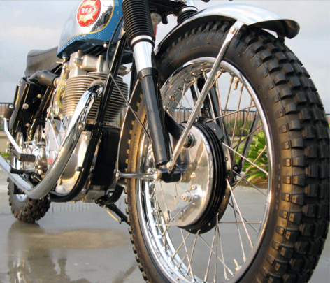 The machine he rode was a 1956 BSA Gold Star Scrambler. Chuck comments, “I changed the tank to a 5 gallon, borrowed a front brake baking plate with a scoop (for additional cooling), and used a 19” front wheel instead of the standard 21” wheel preferred by the English!” The west coast distributor for BSA, Hap Alzina asked the factory for a replica of this bike. By the late 1950’s, the US market was the strongest in the world for BSA and they followed his advice and responded with the Catalina Scrambler in 1959. The machine would go unchanged until its production stopped in 1963.