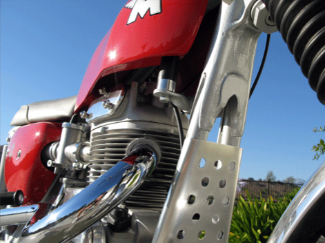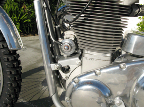 It’s easy to see the Rickman brothers influence in the design of the frame. The G85 was a duplex design with lightweight forks, machined front hub, magnesium rear hub, and as many lightweight fiberglass and aluminum components as possible utilized. Though Matchless claimed 291 lbs., actual weight was nearly 320 lbs, much heavier that the 2-stroke competition.