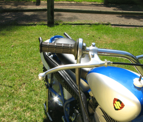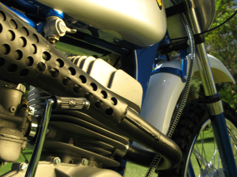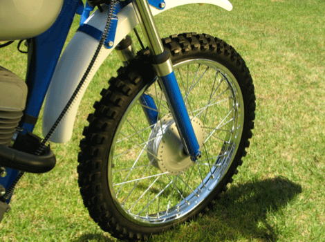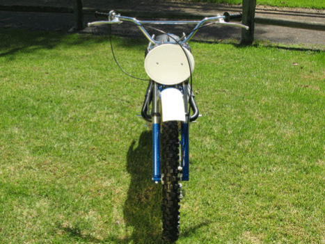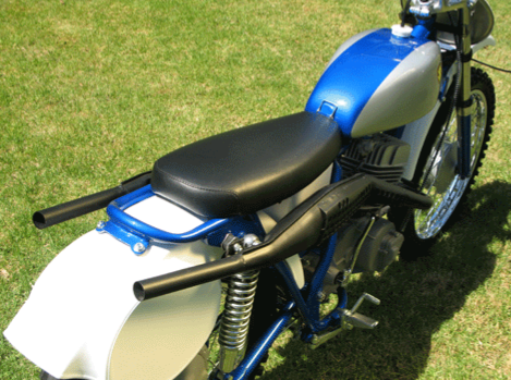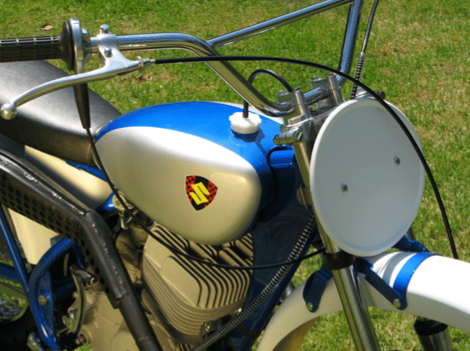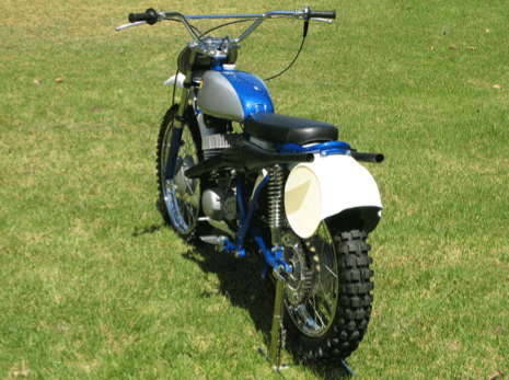 This TM started off as a basket case. It was ridden into a scrap yard in Fresno by a young kid to sell it for scrap steel. The steel yard owner gave him $50.00 for it. I chased the bike down for about three years and finally the owner sold me this bike for a ridiculous sum and still in horrible condition. There are advertisements every month in VMX Magazine asking the public if they have seen any part of a 68 TM 250. There are fourteen known to exist and this one is absolutely correct and original right down to the Yokohama tires, fenders and pipes, and the very rare RH style motor. It is priceless!