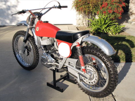 This bike is all original with the exception of the rear tire, the cadmium plating and the frame paint. Originally used in 1970 by a privateer local pro motocrosser as a backup bike, the motorcycle saw little use. The bike retains the original front tire, seat, paint and all other original components. Winner of multiple awards, you don’t see them any more original than this.