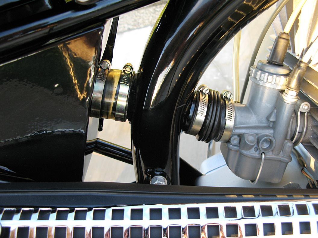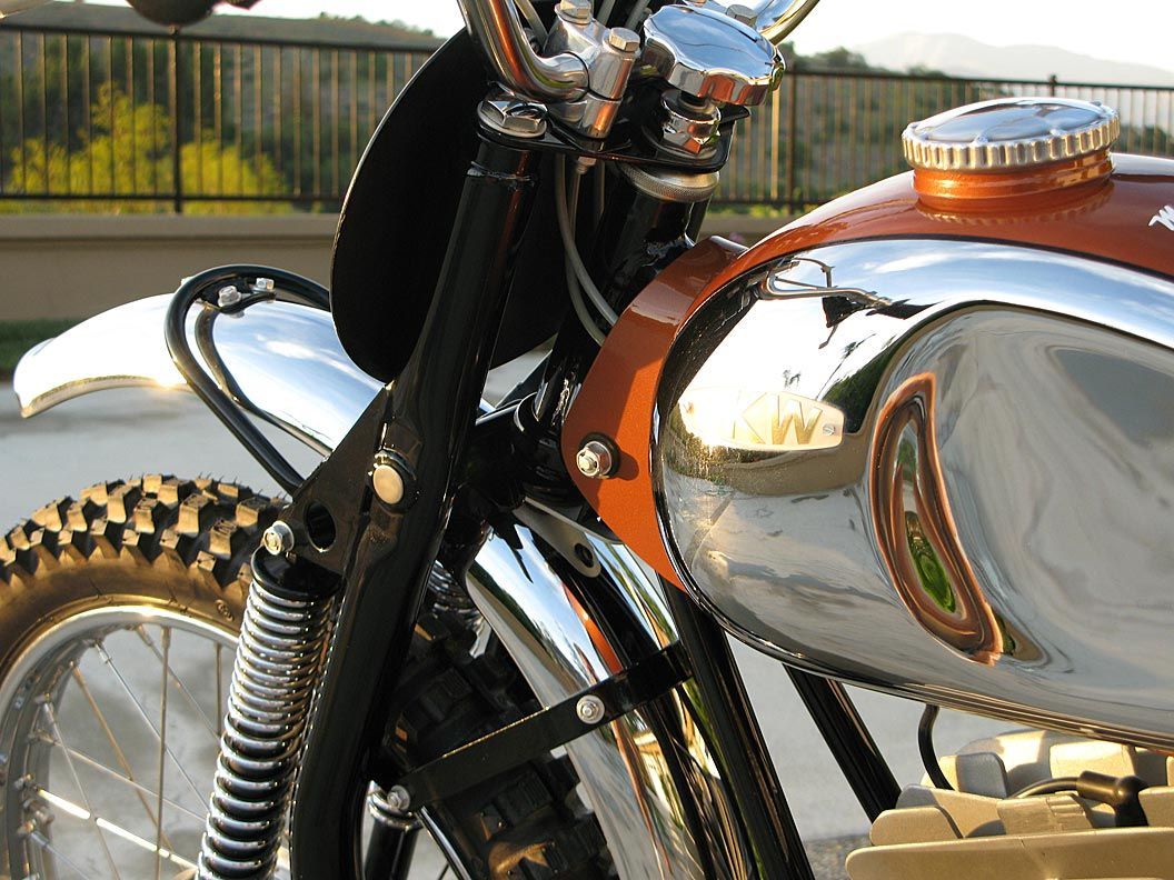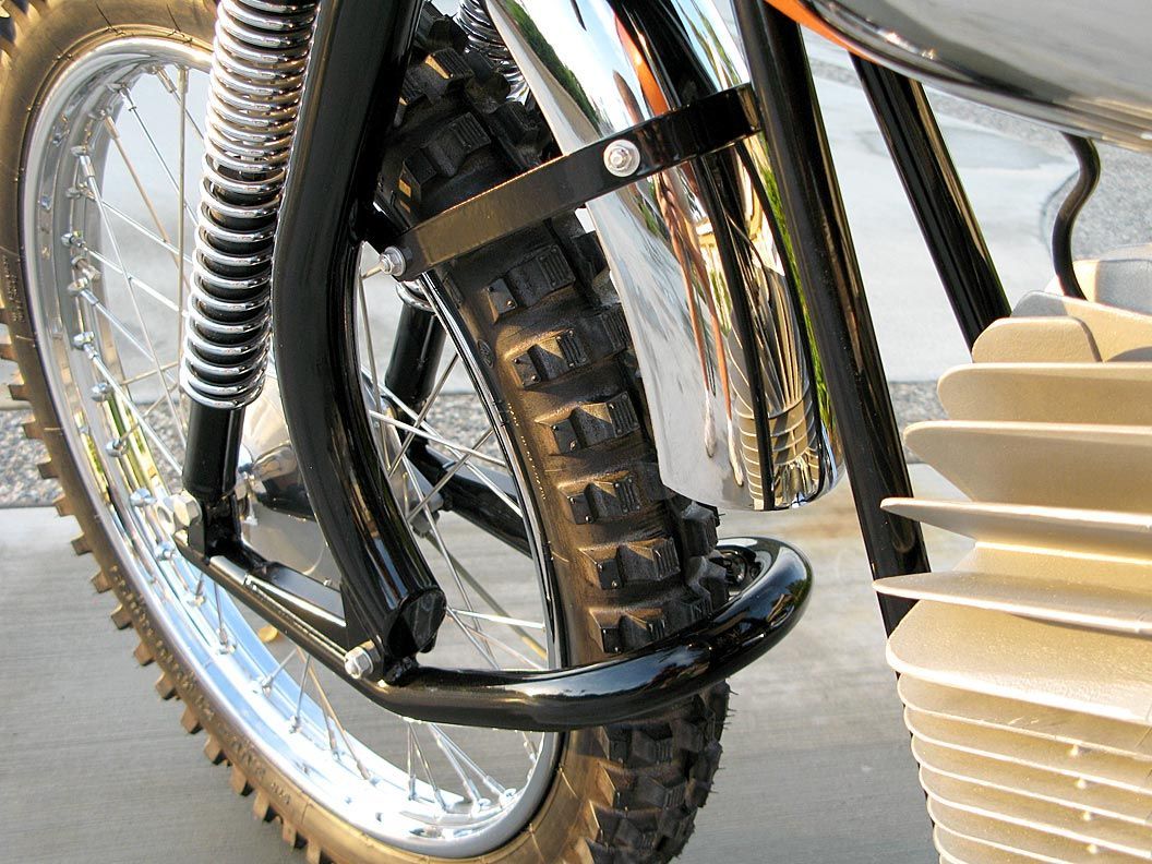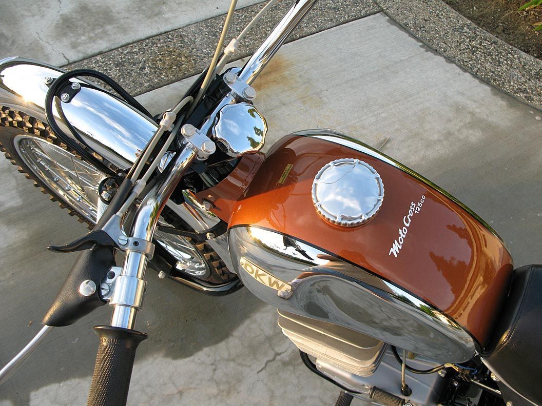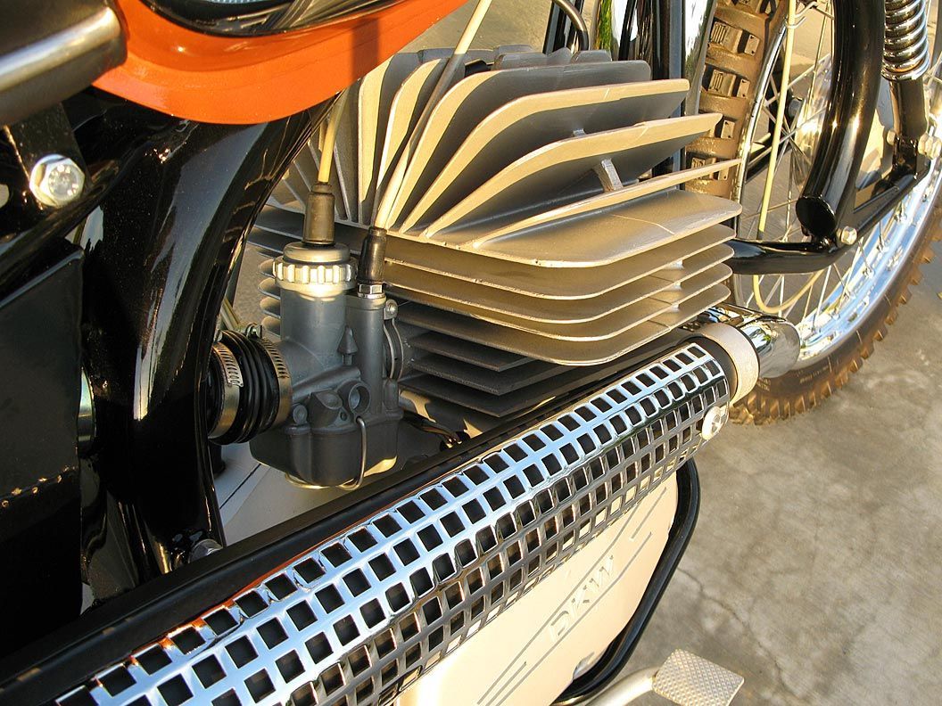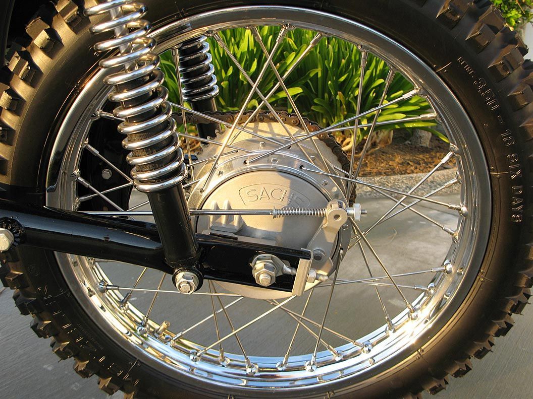 This bike is probably the most correct DKW of this year in the United States. I purchased the South Eastern USA Sachs/DKW inventory in 1998, specifically to acquire all of the difficult to find parts needed to build this bike. The basic core of the bike was given to me by one of my friends that I used to race against with my Penton, Mike Skelton. The bike has the Metzeler tires that it came with in 1971. All the parts on this bike are either NOS or rebuilt with NOS parts. This bike is a multiple award winner and was featured in VMX Magazine. This is truly a special bike and very awkward to ride. The front end comes up when applying the front brakes in a turn. You have to have wrists of steel.