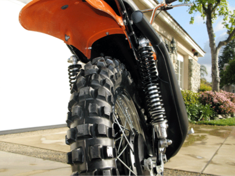 Known as the worst handling motorcycle ever produced for the dirt by any off road motorcycle manufacturer. The engine is equipped with two half circle flywheels which allows the engine to reach full power instantly, no lag, no delay. Turn the throttle and the rear wheel instantly starts spinning in any gear. Add to that terrible frame geometry which prevents the bike from turning and you have the bike most likely to throw you for a loop, according to several magazines.