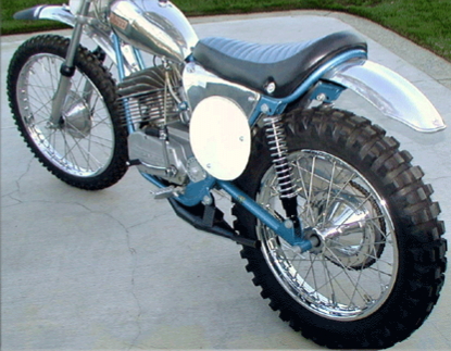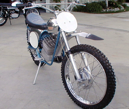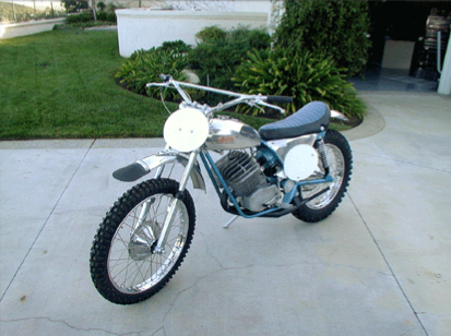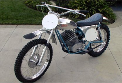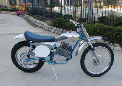 Some of the chrome plating on this bike has been redone. It has the original frame paint, as well as, new original Dunlop tires from the period. The bike had very little time on it when purchased. Tyrans were made by Mitsubishi to compete in the then lucrative 125 CC Motocross market.