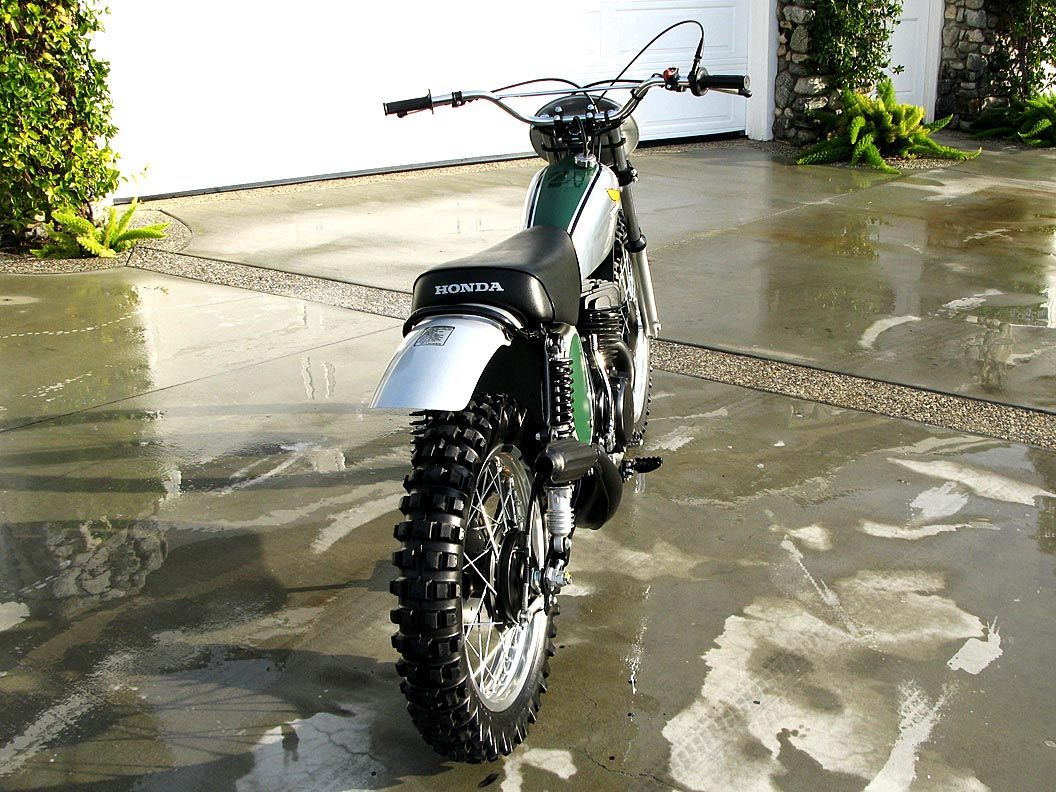 This bike is essentially a “Brand New” Honda. In 1973 a young gentleman bought this Elsinore, took it home, started it and rode it up and down his street one time. He parked it in the garage and unfortunately and unexpectedly passed away the next day. His wife, after 42 years, took the bike to a local motorcycle dealer in Virginia and asked what he would give her for it. He probably only paid $500.00 for it but I didn’t ask. He called the Owen Collection and sent a video to me of the bike being started on July 15, 2015.
