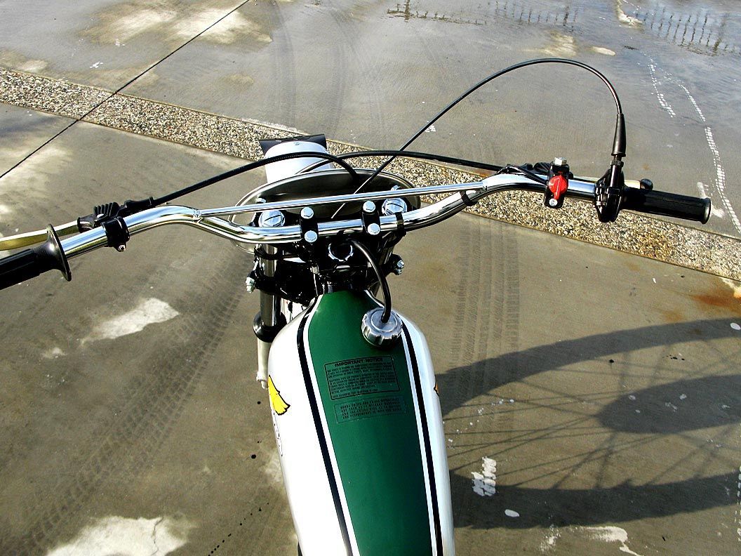 After some negation, the bike was purchased for the museum. The same week an identical N.O.S. Elsinore sold on EBay for $18,000.00 and it was not quite as nice as this one. I cleaned the bike, put new gripes on it and sprayed a portion of the pipe black because it was badly stained. Otherwise it is as it left Honda of Japan in 1973; a true original.