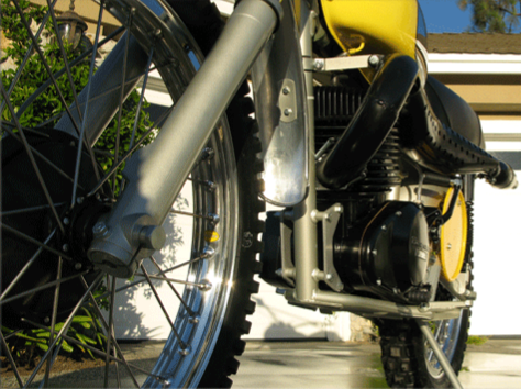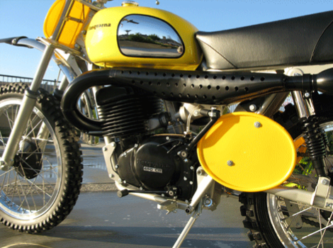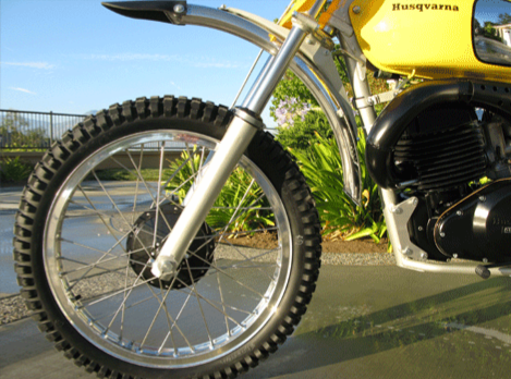 Trying to find the ultimate Desert racer, Husqvarna set out in 1973 to design just that. An increased 450 cc size motor, an enormous tank and the traditional great handling geometry that rewarded Husky for years with every major desert event win from the Mint 400 to the Baja 1000.