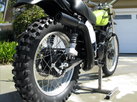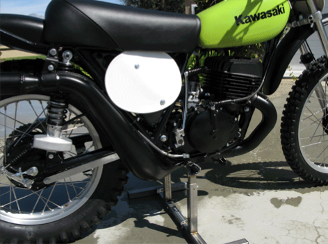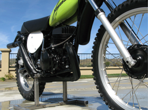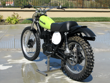 In early 1972, Kawasaki recognized the potential of a growing motocross market and they set out to design the ultimate motocross weapon. This model was a ground up design featuring magnesium hubs, chromoly frame, Kayaba “Hammer Head” shocks, plastic fenders and tank. It weighs only 212 pounds. Brad Lackey claimed that the bikes were so fast that they should have been banned. You can see him on his factory F 12 MX in the photos of the museum. Only about 150 of these bikes were produced and released to the public, but by 1974 they were produced in masses and were dubbed the KX 450. They were a handful and it took a few more years for Kawasaki to develop a true open class contender.