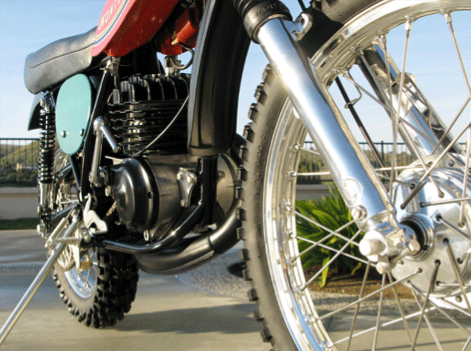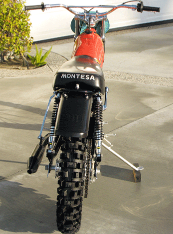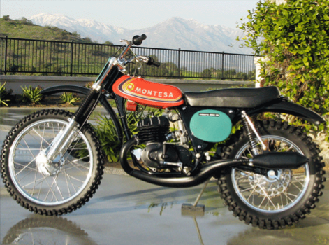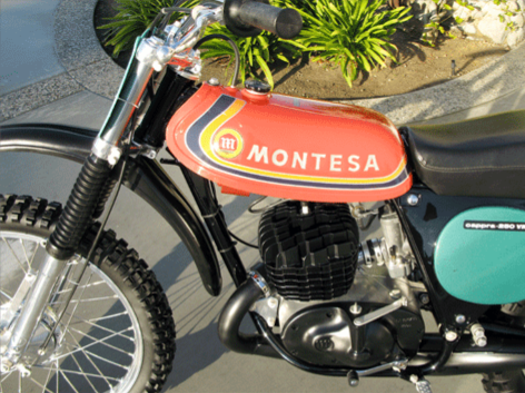 This Cappra VR is one of 1,600 produced in 1974 and it’s the successor to the model 63 Cappra 250 successfully ridden by Tim Hart, John DeSoto and factory rider Pete Lampu, in the late 60’s/ early 70’s. The VR designation is for Factory Montesa motocross rider Kalevi Vehkonen. In 1973 Vehkonen rode a similar Montesa prototype in the World Motocross Championships and in Belgium he took first overall ahead of an impressive field including Decoster, Mikkola and Hakan Anderson. Two weeks earlier, he won the first moto over a more impressive field including the above and Geobers, Robert, Pomeroy and Aberg. The Vehkonen Replica (VR) is the most popular Montesa of all time and certainly one of the most beautiful bikes of the period. This one has the original seat, tank and front number plate unrestored as they were just too nice to touch. The front number plate is very rare, as the original lettering was the first to go to make room for a competition number.