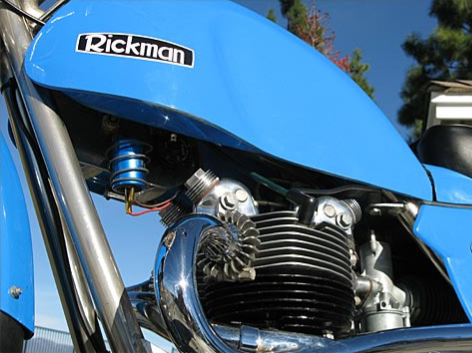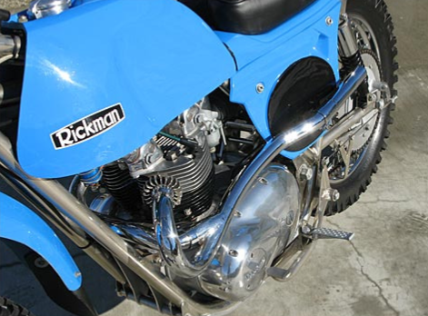 The Rickman that you see here is a Mark IV chassis powered by a 500 cc Triumph twin. This is representative of a combination that carried the Rickman brothers and many of their customers to wins throughout the 1960’s and early 1970’s, before the lighter two strokes ran them off the tracks of Europe.