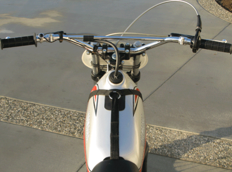 My friend Lee Fabry did the initial restoration and I added several of the correct components including tires, shocks, front number plate, grips, throttle components, rear backing plate and pipe supports. This bike is exactly as it rolled off of the showroom back in 1974.