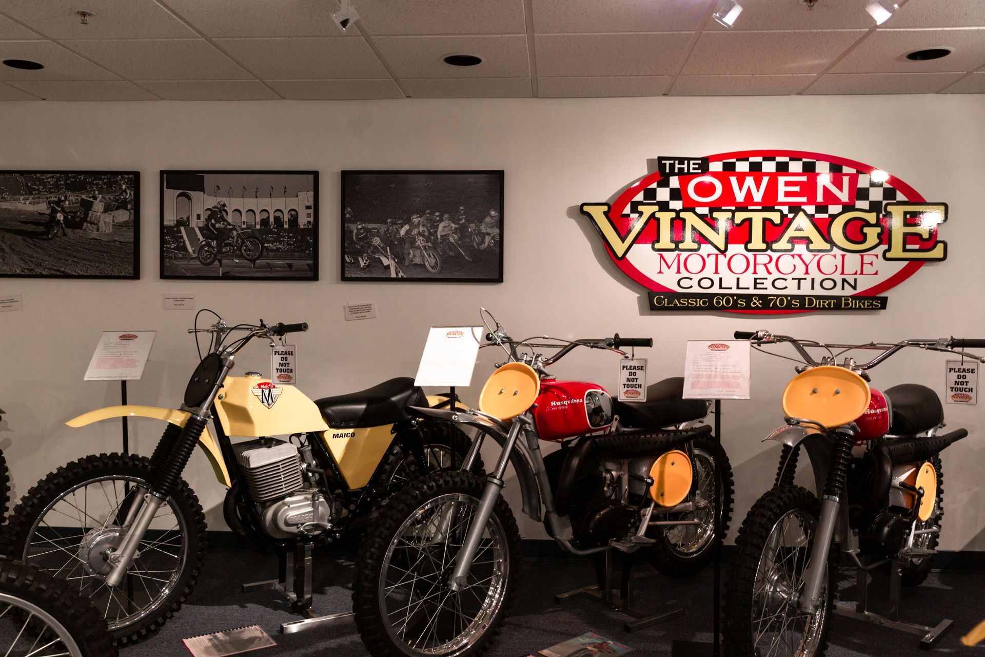 The Owen Collection is a private museum dedicated to the preservation of motocross motorcycles from the 1950’s, 60’s and 70’s. The museum was founded by Kelly Owen, a life-long motorcycle rider and racer. As a restoration enthusiast, Kelly had a hand in bringing all the bikes in the museum to their pristine condition, including every nut and bolt and all the way down to the tires, just like the day they left the manufacturer.